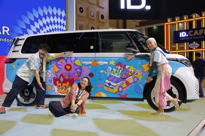 TANGERANG – Menjelang akhir perjalanan Volkswagen di GIIAS 2025, merek mobil legendaris ini pun kembali mencuri perhatian dengan mengungkap hasil lukisan di mobil ID. BUZZ yang dilakukan secara live dari ajang Jogja Volkswagen Festival (JVWF) 2025 dan dilanjutkan di GIIAS 2025 melalui sebuah seremoni special bertajuk “The Story Behind the Moving Culture Canvas”. Hadir pada seremoni kedua IP Creator atau para seniman lokal binaan EKRAF, yaitu Beemala dan Tenka Street, serta brand stiker premium MAXDECAL — ketiganya menjadi aktor utama di balik desain eksterior ID. BUZZ, kendaraan listrik ikonik Volkswagen yang kini menjelma sebagai kanvas seni bergerak di tengah hiruk pikuk industri otomotif.