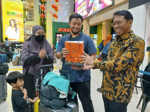 Direktur Utama KAI Didiek Hartantyo menyapa pelanggan dan menyampaikan permohonan maaf karena terjadi keterlambatan akibat gangguan perjalanan kereta api yang terjadi di jalur kereta api pada Km 32+5/7 antara Stasiun Karangjati dan Stasiun Gubug di Kabupaten Grobogan pada Sabtu (25/1) Kemarin.