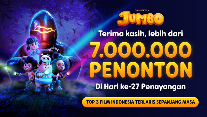 “JUMBO” menjadi film Indonesia ketiga yang berhasil meraih lebih dari 7 juta penonton,