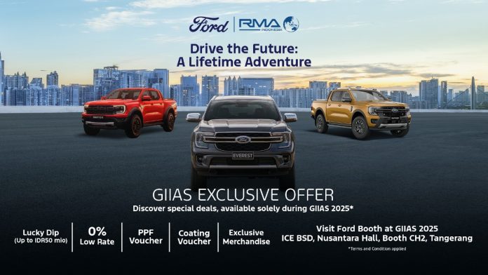 Jakarta — Ford RMA Indonesia menyapa para pecinta otomotif Tanah Air melalui partisipasinya di ajang Gaikindo Indonesia International Auto Show (GIIAS) 2025. Mengusung semangat “Drive the Future: A Lifetime Adventure”, Ford menghadirkan jajaran kendaraan andalannya lengkap dengan berbagai penawaran eksklusif yang hanya tersedia selama pameran berlangsung. Bertempat di ICE BSD, Nusantara Hall, Booth CH2, pengunjung akan disuguhkan pengalaman interaktif, produk unggulan, serta berbagai promo menarik.