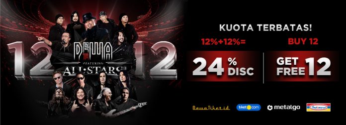 Jakarta – Rayakan Harbolnas 12:12 tahun ini dengan tawaran tiket luar biasa untuk acara musik paling dinanti pada tahun 2025, “DEWA19 Featuring All Stars 2.0“. Konser epik ini akan digelar pada Sabtu, 18 Januari 2025, di Stadion Utama Gelora Bung Karno (GBK) Jakarta. PT. Dewa Sembilan Belas All Stars Promotor bersama PT. Mega Bintang Investama dengan bangga mengumumkan promo Harbolnas yang hanya berlangsung satu hari untuk memberikan pengalaman menonton konser Akbar DEWA19 Featuring All Stars 2.0 di awal tahun 2025.